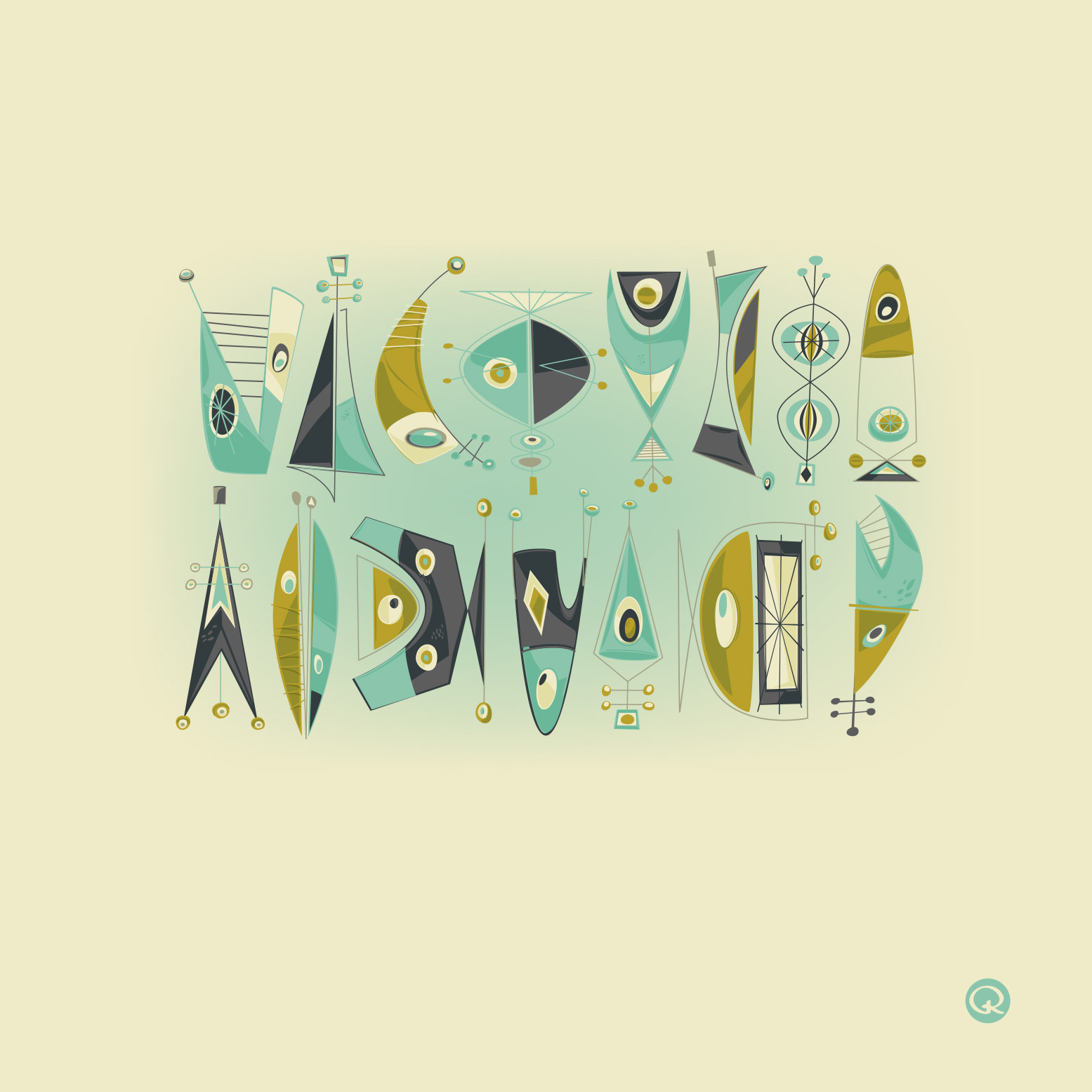 A series of limited palette illustrations, designs, patterns and fonts.