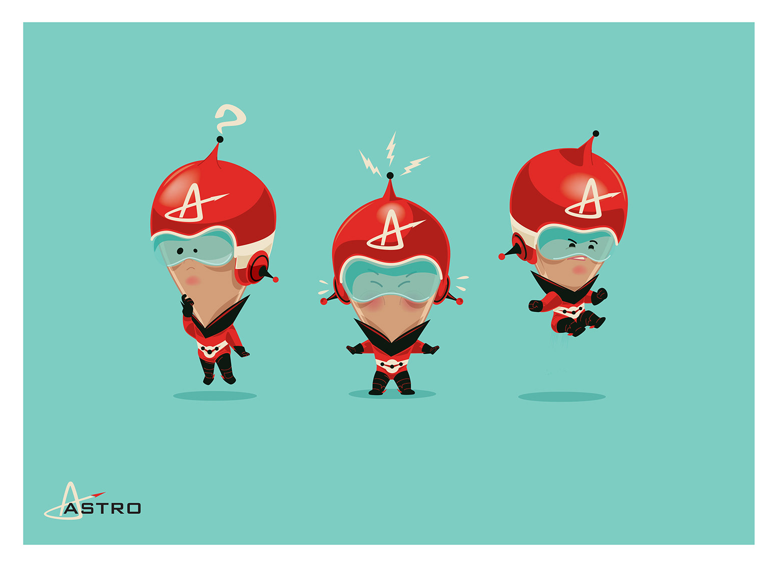 Mascot design for Astro! The electronic payment and inventory service wanted a character mascot that would work across all platforms including toys.