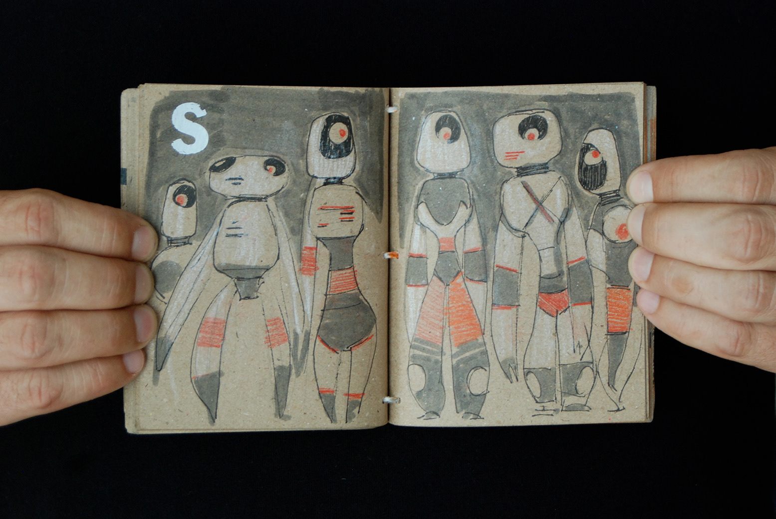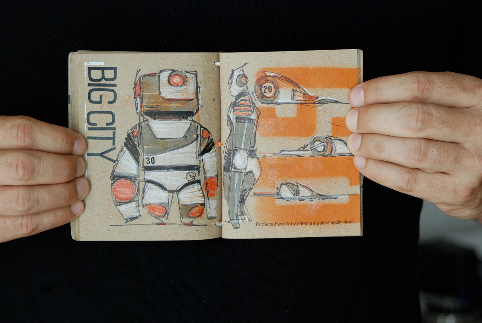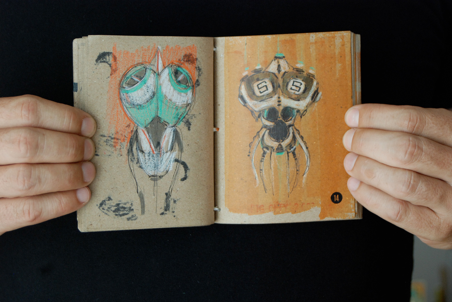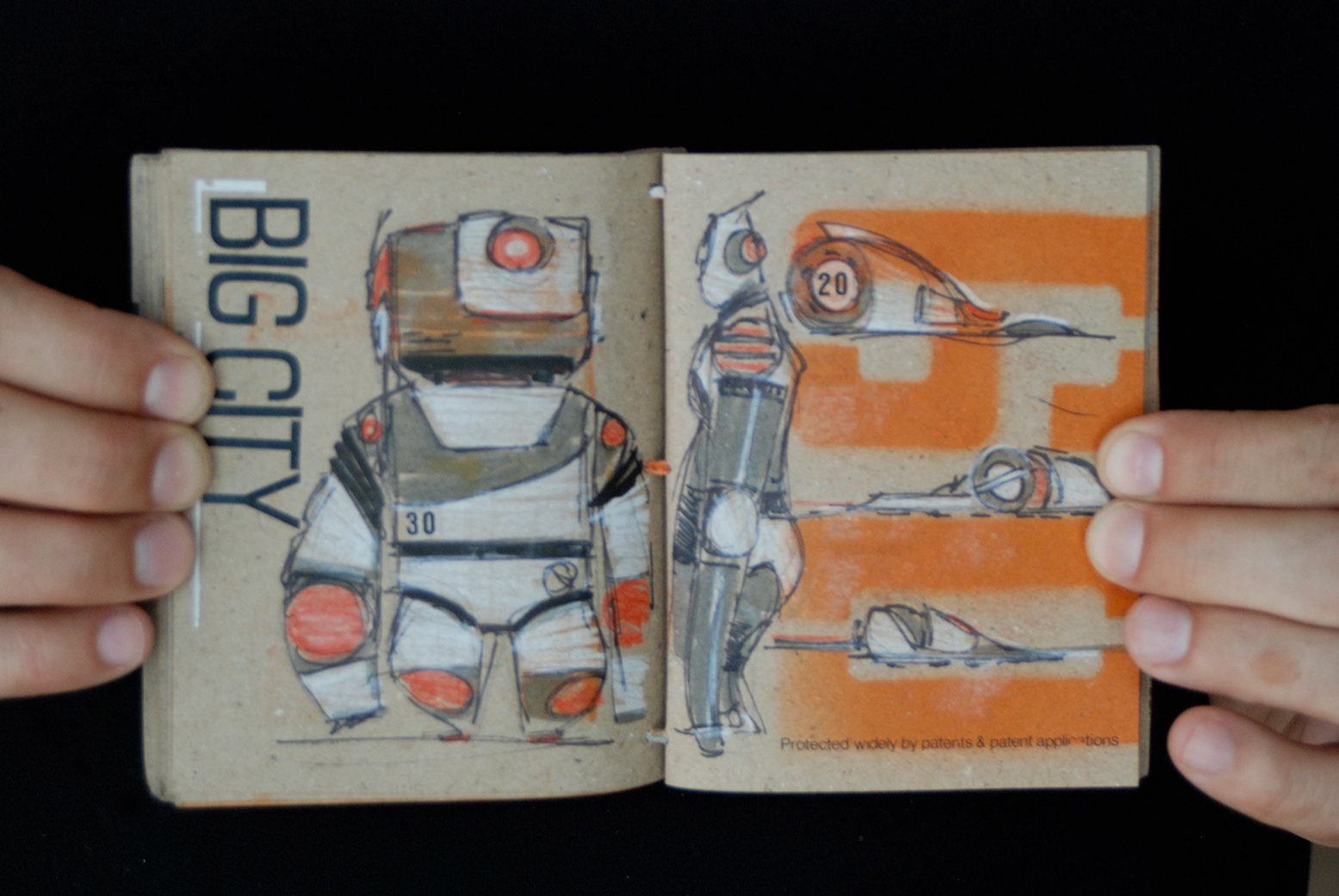 Some excerpts from one of the small Big City sketchbooks I've kept for jotting down ideas and working on concepts.