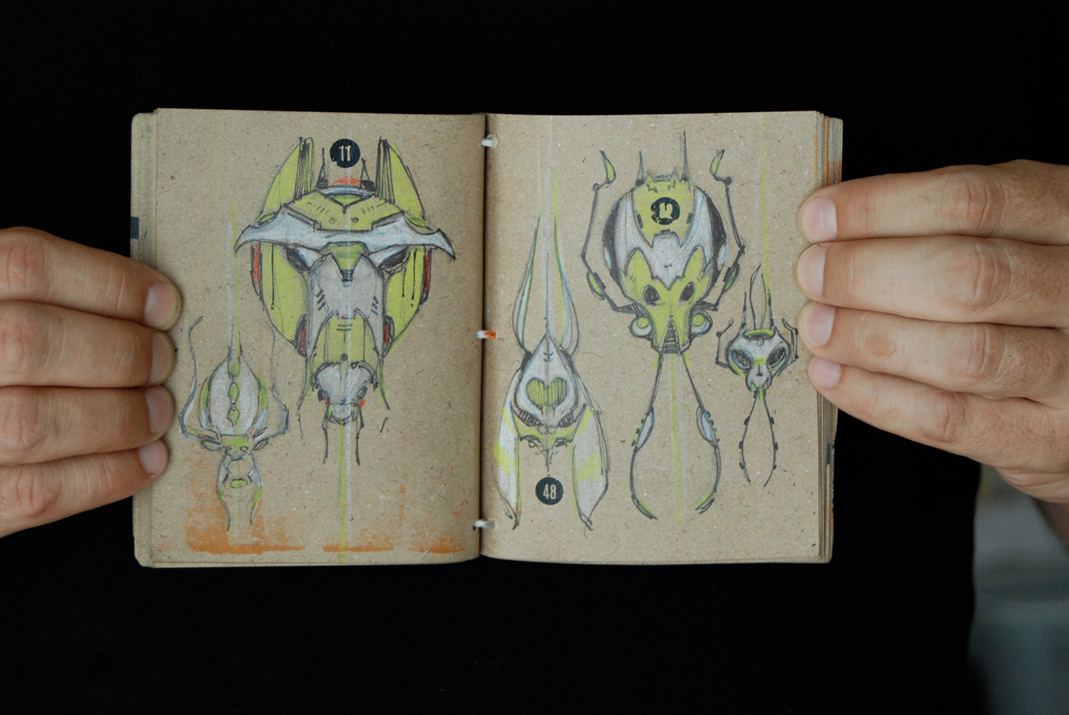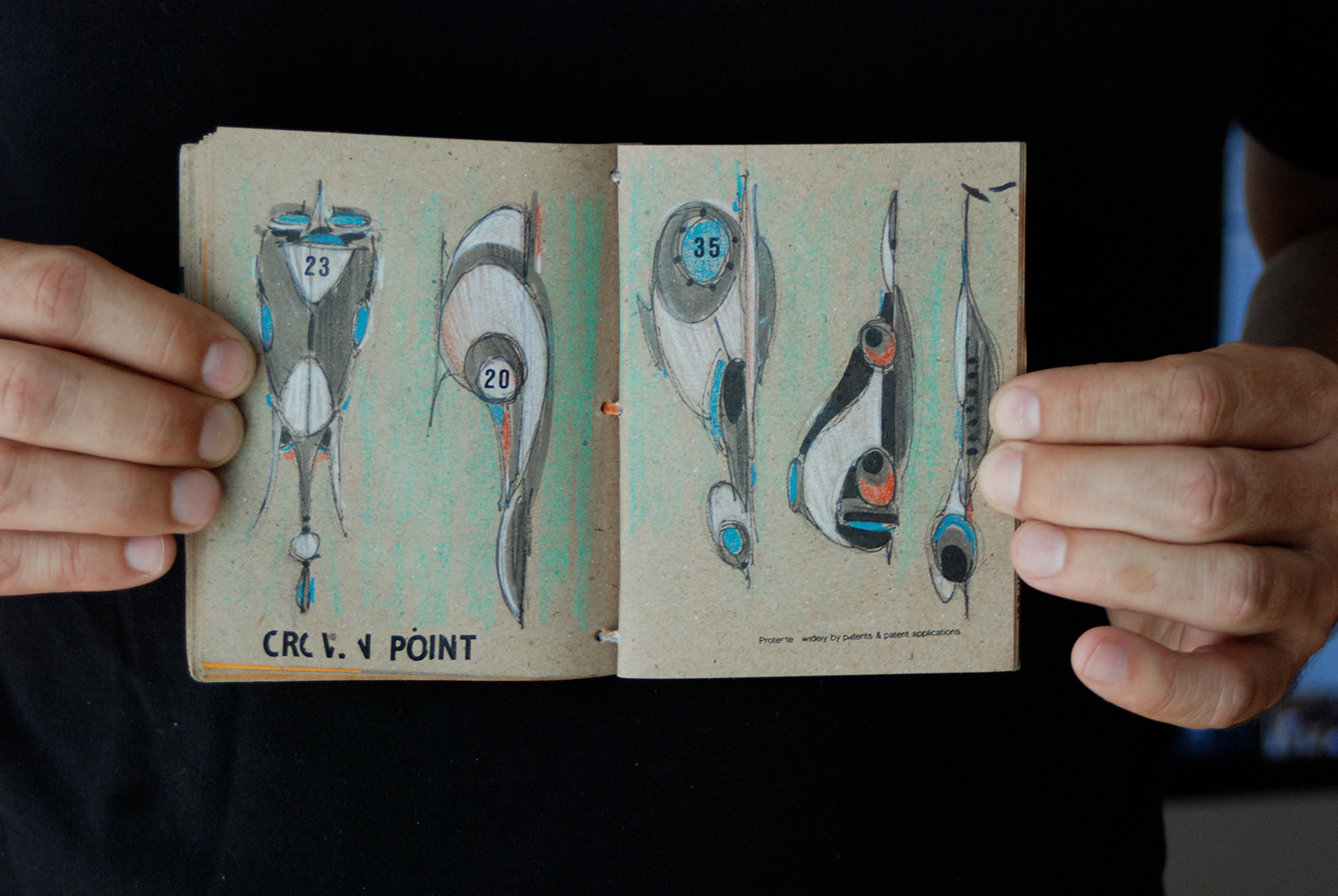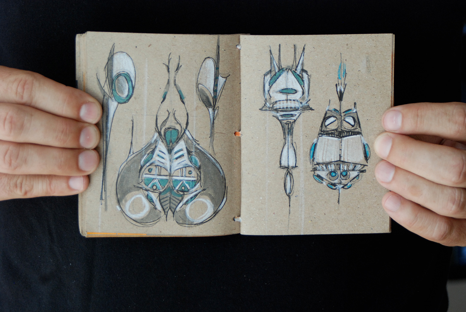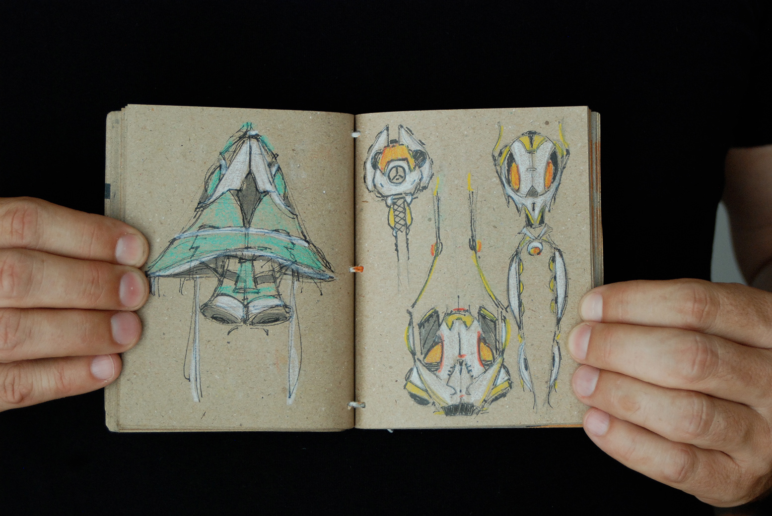 Some excerpts from one of the small Big City sketchbooks I've kept for jotting down ideas and working on concepts.