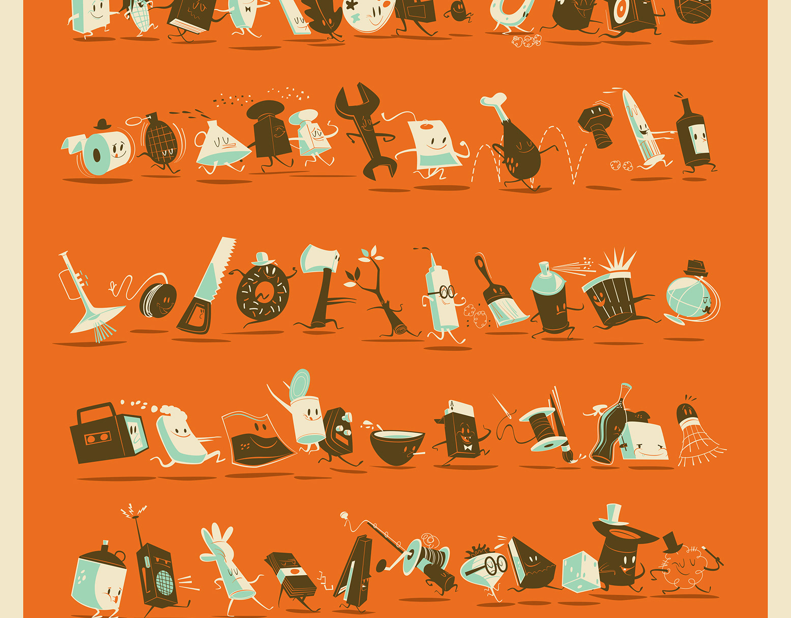 A series of limited palette illustrations, designs, patterns and fonts.