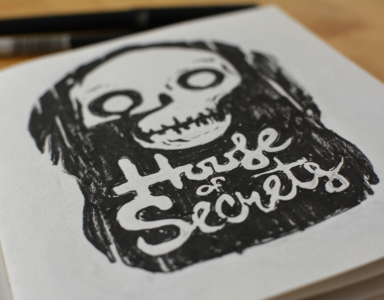 Logo studies for House Of Secrets scanned from small sketchbook.