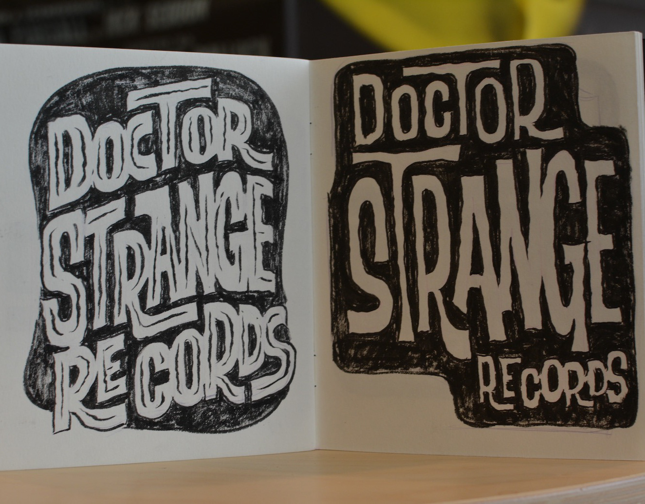 A few sample spreads from the sketchbook I kept while designing type treatments and logos for record label and store Doctor Strange records.