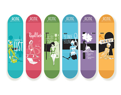 Here are several of the skate decks I've designed for ACME Board Company.