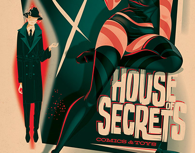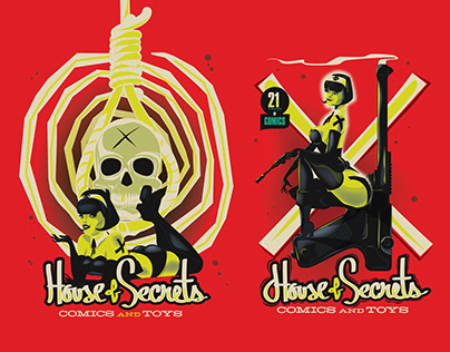 Print and poster design for House Of Secrets comic shop in Burbank California.