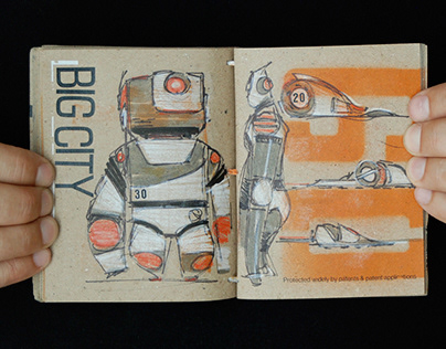 A few more excerpts from on of the Big City sketchbooks I've made. This is where I work out rough ideas for characters, ships and environments.